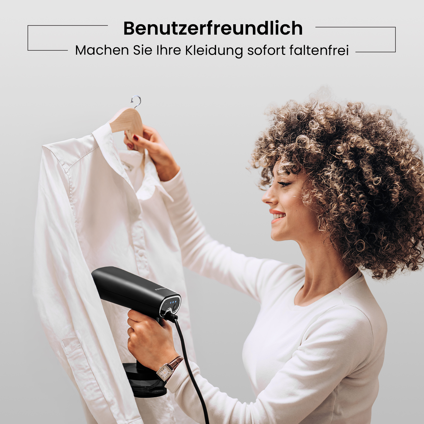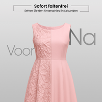 Die chemische Reinigung ist der schnellste und einfachste Weg, Ihre Kleidung und Heimtextilien knitterfrei zu machen. Der Dampf hebt die Textilfasern an, stellt ihre natürliche Form wieder her und tötet 99 % der Bakterien ab, sodass sich Ihre Kleidung frisch anfühlt. Sie brauchen kein Bügelbrett; Hängen Sie Ihre Kleidung einfach auf einen Kleiderbügel und drücken Sie den FLOWSTEAM-Dampfglätter sanft gegen den Stoff.