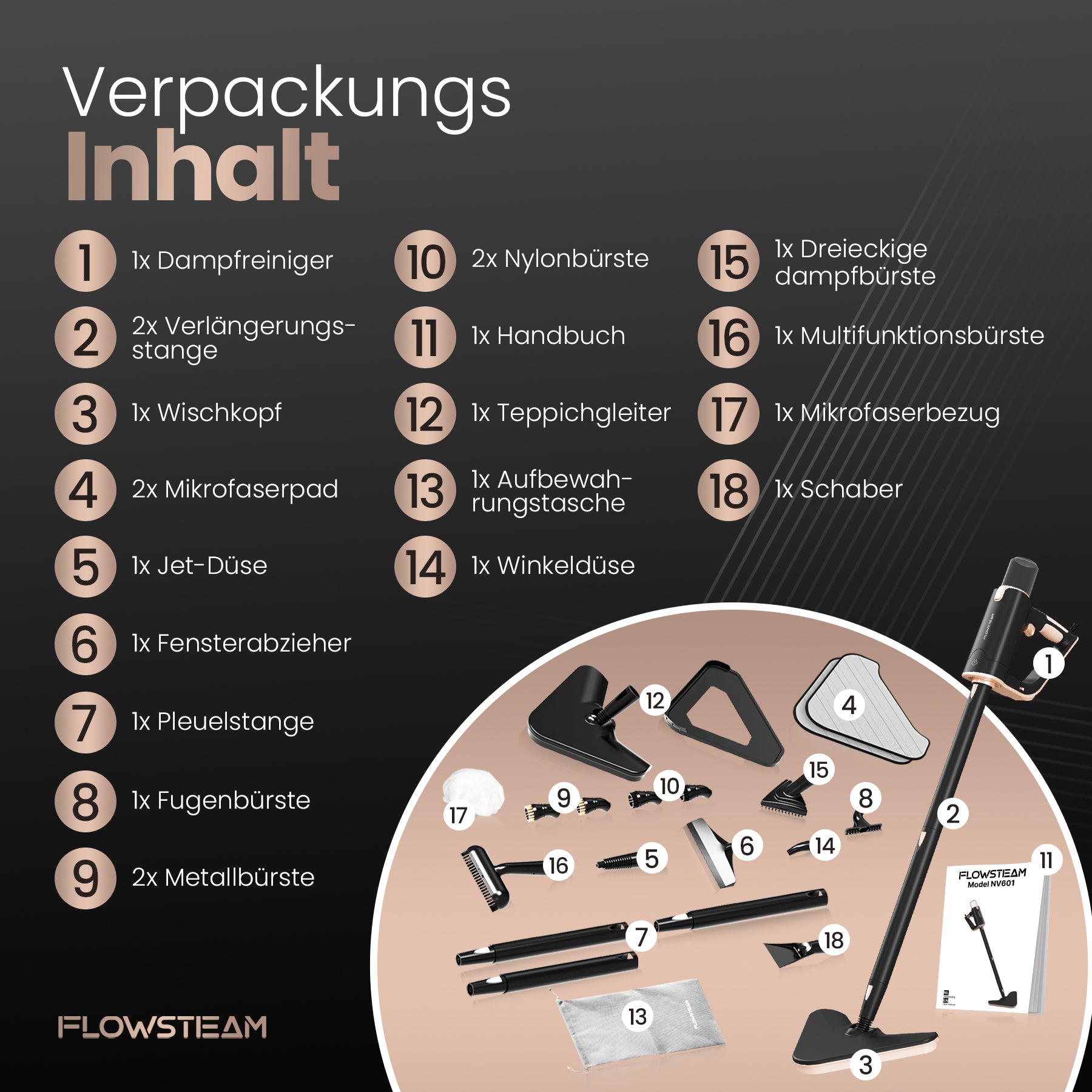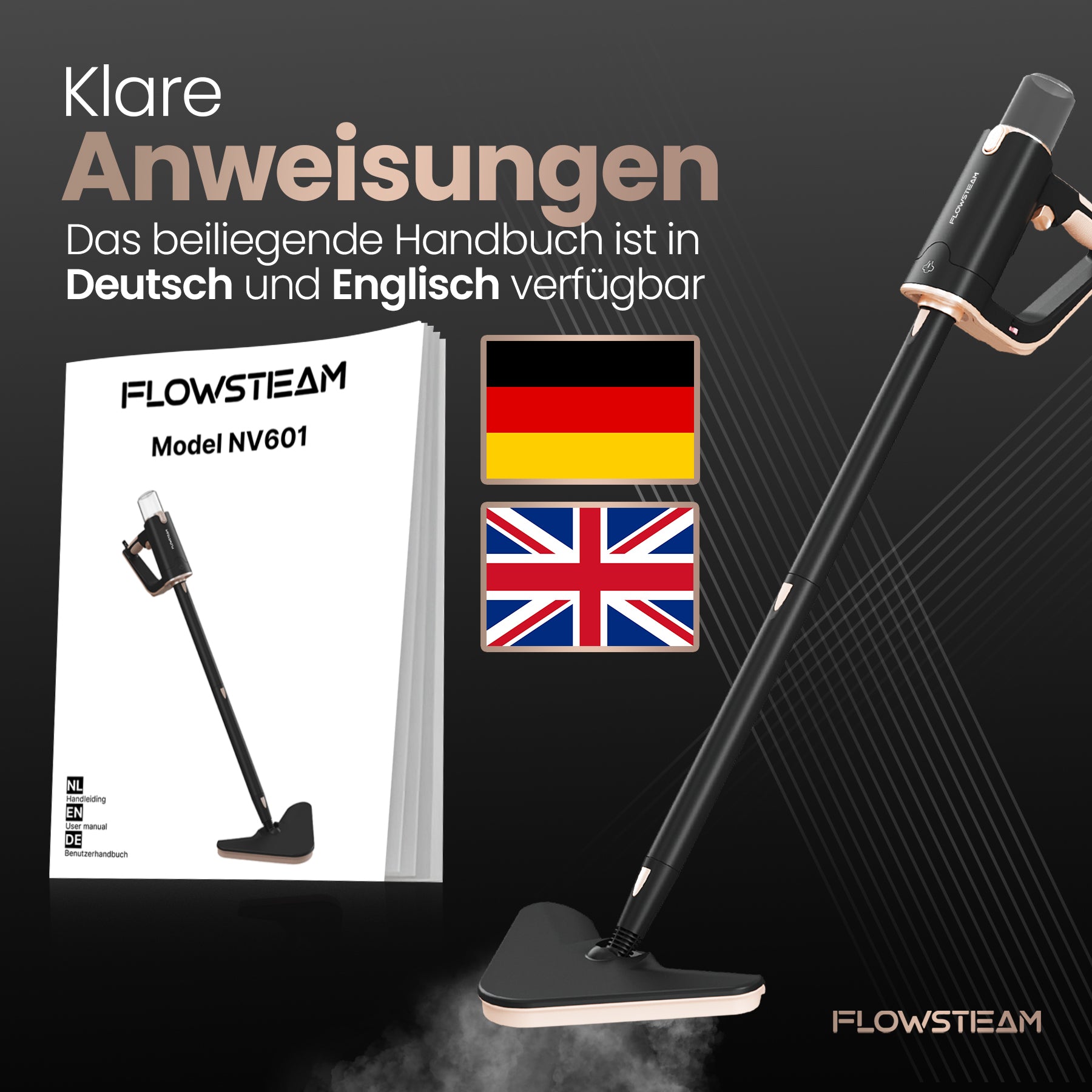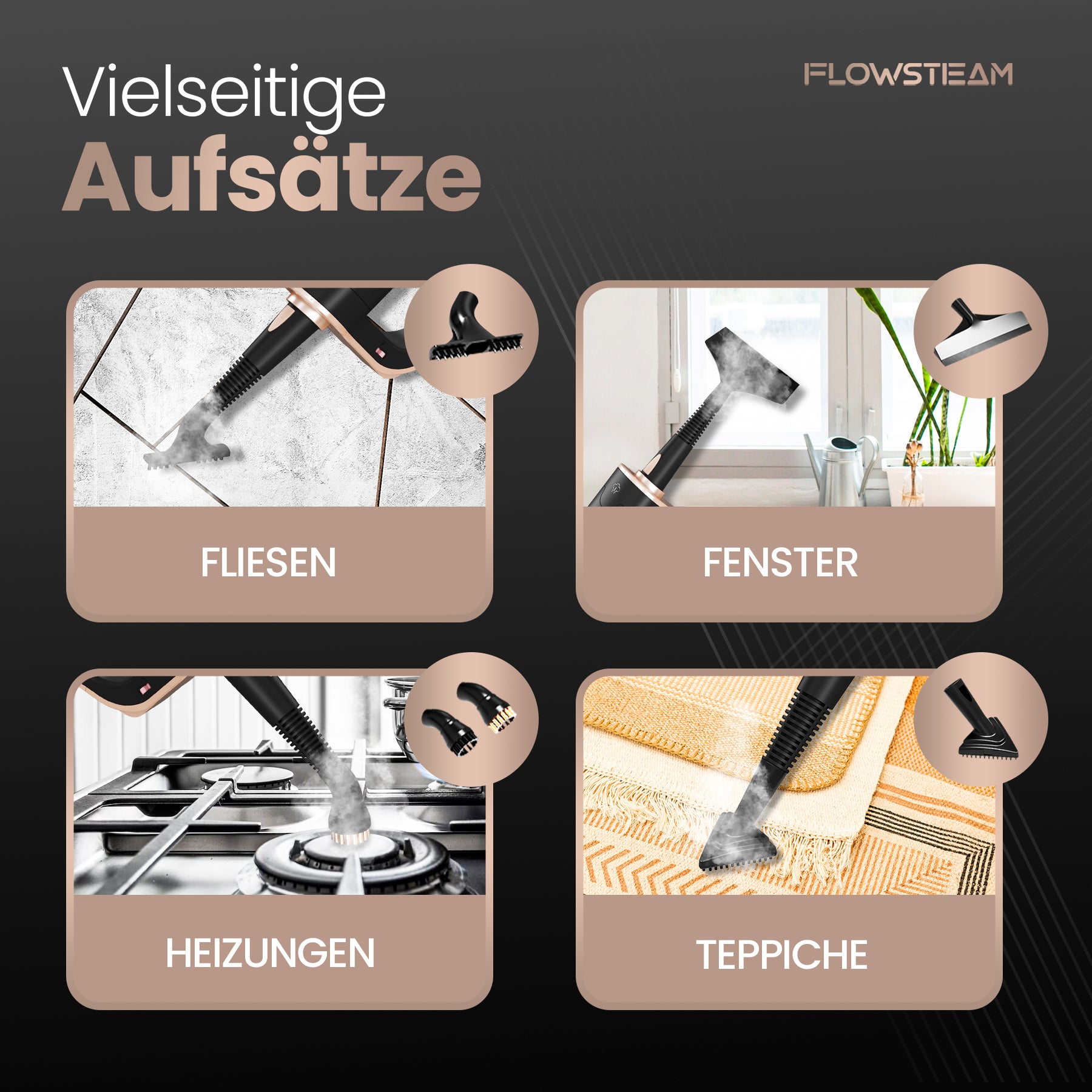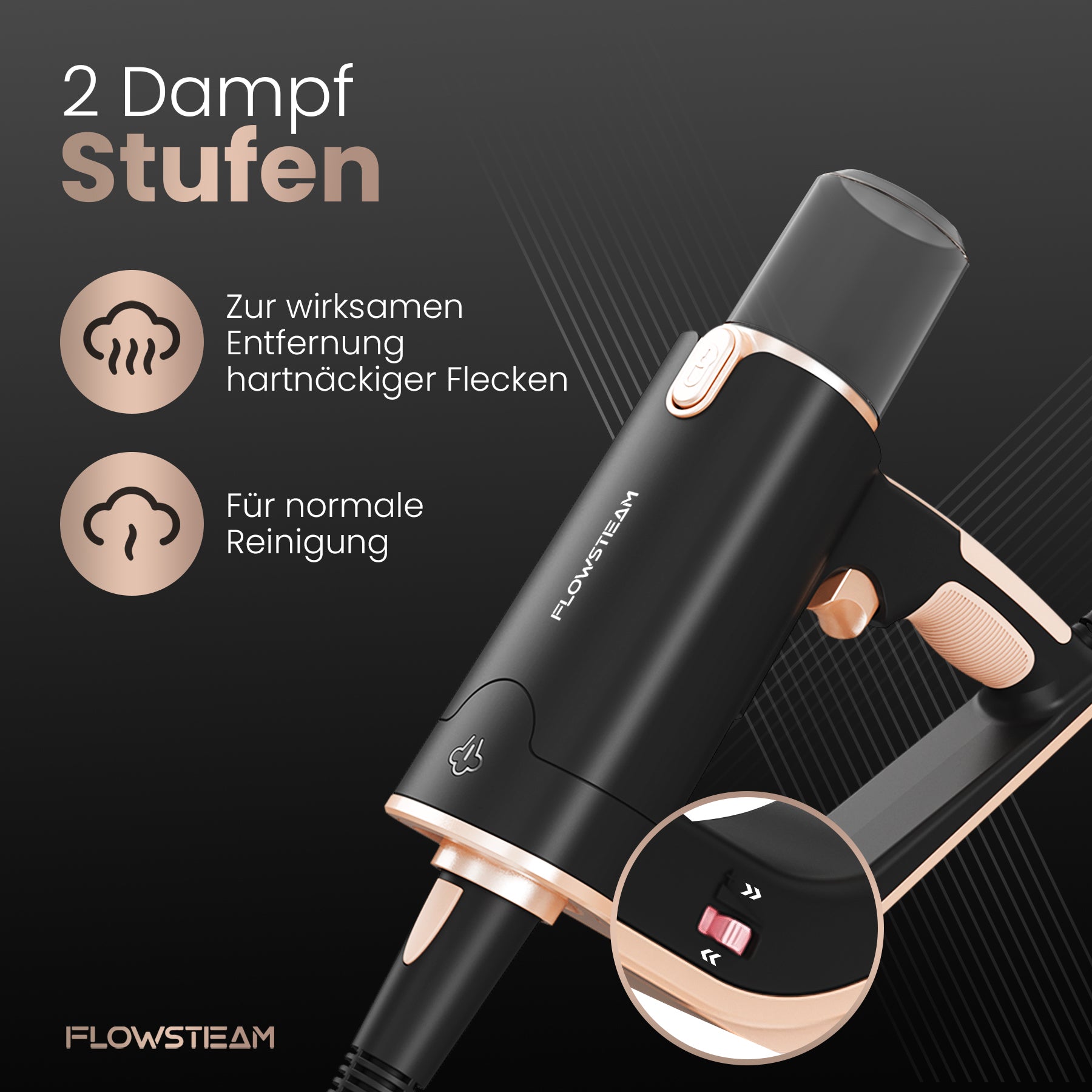 Entdecke den FLOWSTEAM-Dampfreiniger: die smarte Lösung für ein sauberes Zuhause. In nur 15 Sekunden einsatzbereit, mit Dampf bis zu 120 °C und 13 Aufsätzen für jede Oberfläche. Verwende ihn als Handdampfer oder Dampfmopp – für Böden, Möbel und Fenster. Dank des kompakten Designs, des langen Kabels und des abnehmbaren Wassertanks wird Reinigen leichter als je zuvor. Für alle, die schnell und gründlich reinigen möchten, ganz ohne Aufwand.