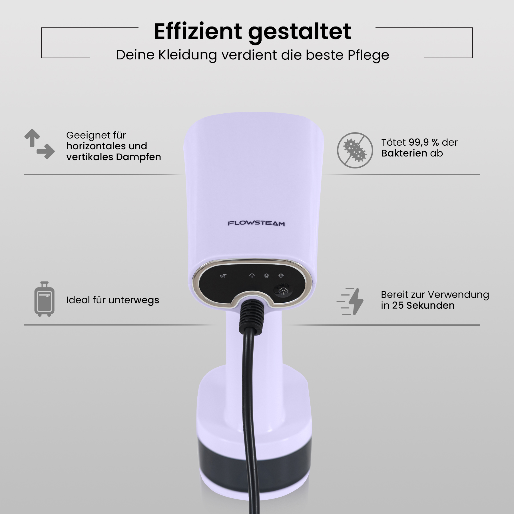 Entdecken Sie den FLOWSTEAM Wäschedampfer: die ideale Lösung für mühelose und nachhaltige Wäschepflege. Mit unserer fortschrittlichen Dampftechnologie wird die Kleidung schnell faltenfrei und die Fasern bleiben länger intakt. Das kompakte und leichte Design macht es ideal für zu Hause und auf Reisen, ohne dass ein Bügelbrett erforderlich ist. Weniger Waschen, weniger Verschleiß und eine längere Lebensdauer Ihrer Garderobe.