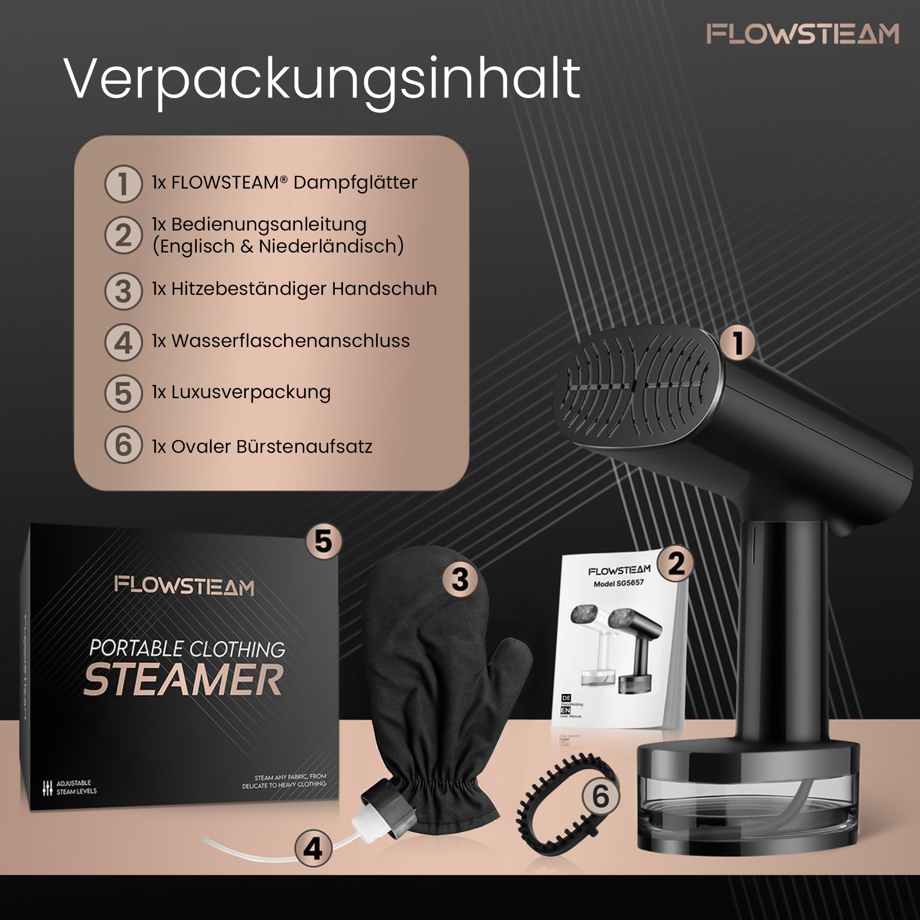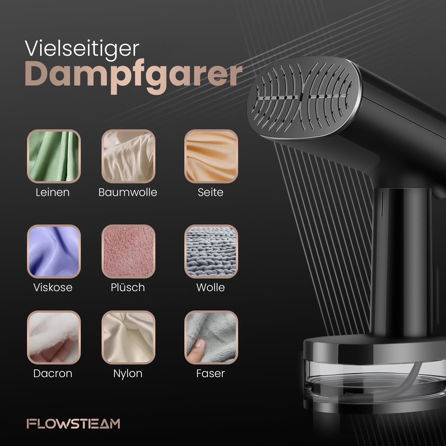 Geben Sie Ihrer Garderobe mit FLOWSTEAM die Pflege, die sie verdient. Kein lästiges Bügeln mehr – dämpfen Sie Ihre Kleidung schnell und effektiv. Sparen Sie Wasser, Energie und Zeit, während Ihre Kleidung immer gut aussieht. Mit FLOWSTEAM ist es ganz einfach, Ihre Lieblingsoutfits länger zu tragen und zu einer nachhaltigeren Zukunft beizutragen. Erleben Sie es selbst und sehen Sie den Unterschied!