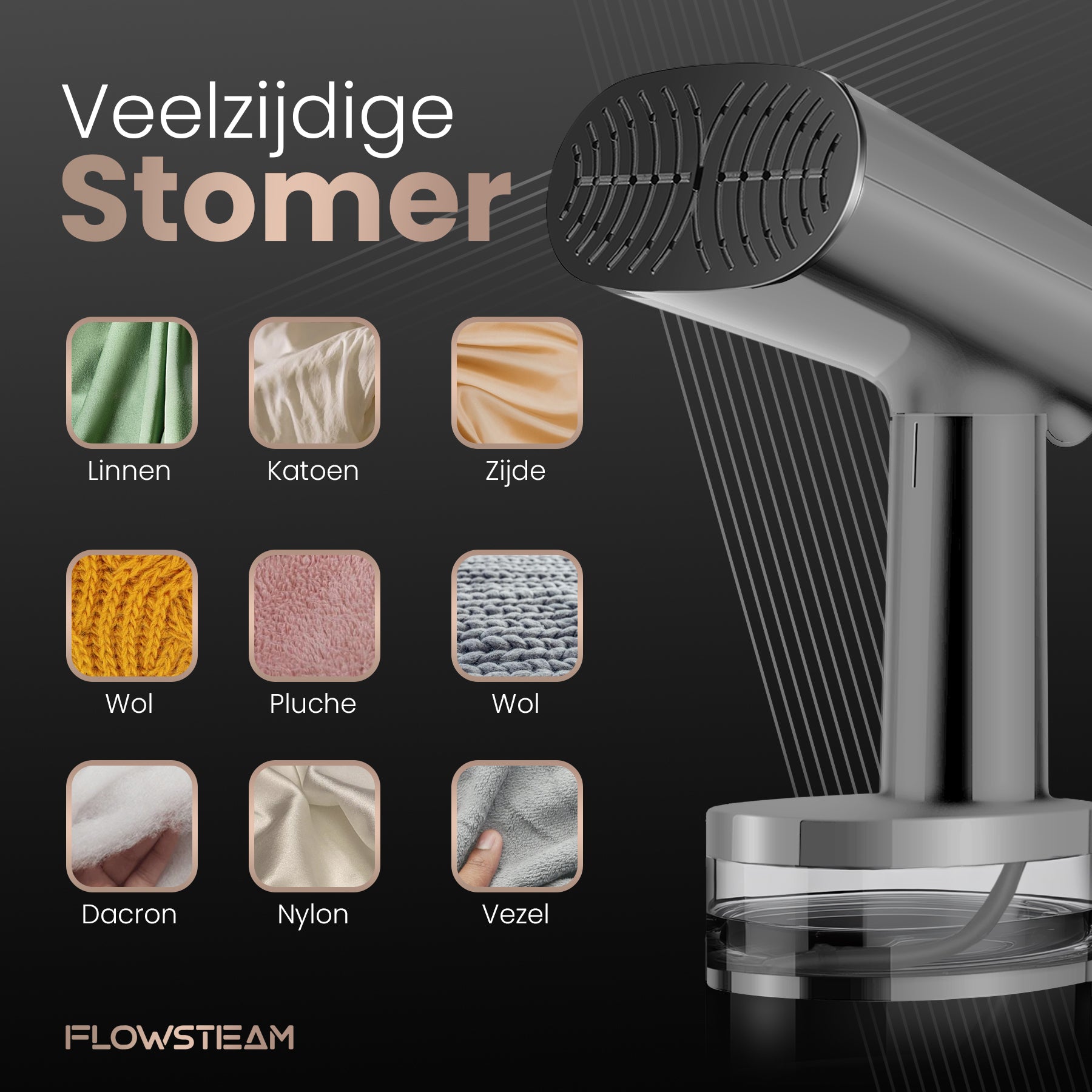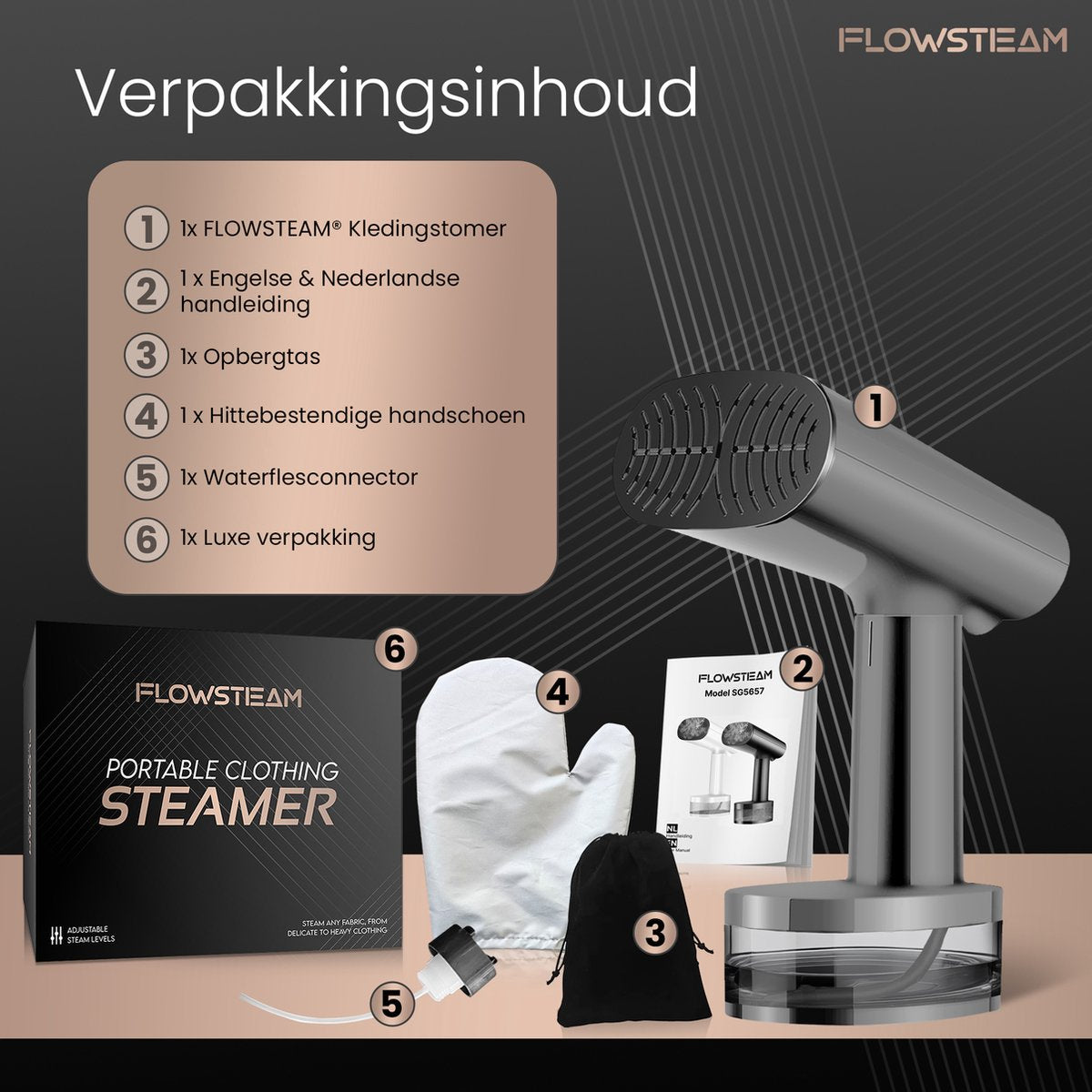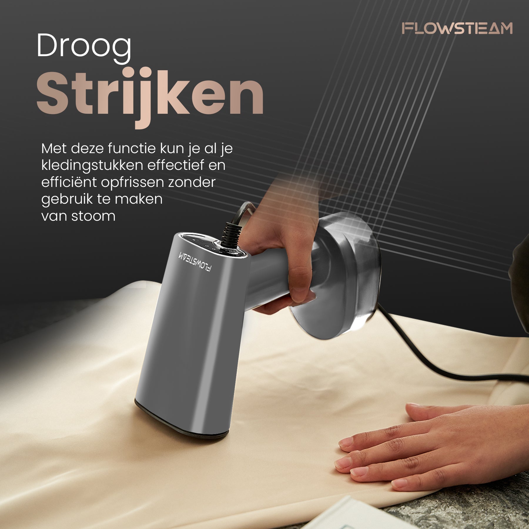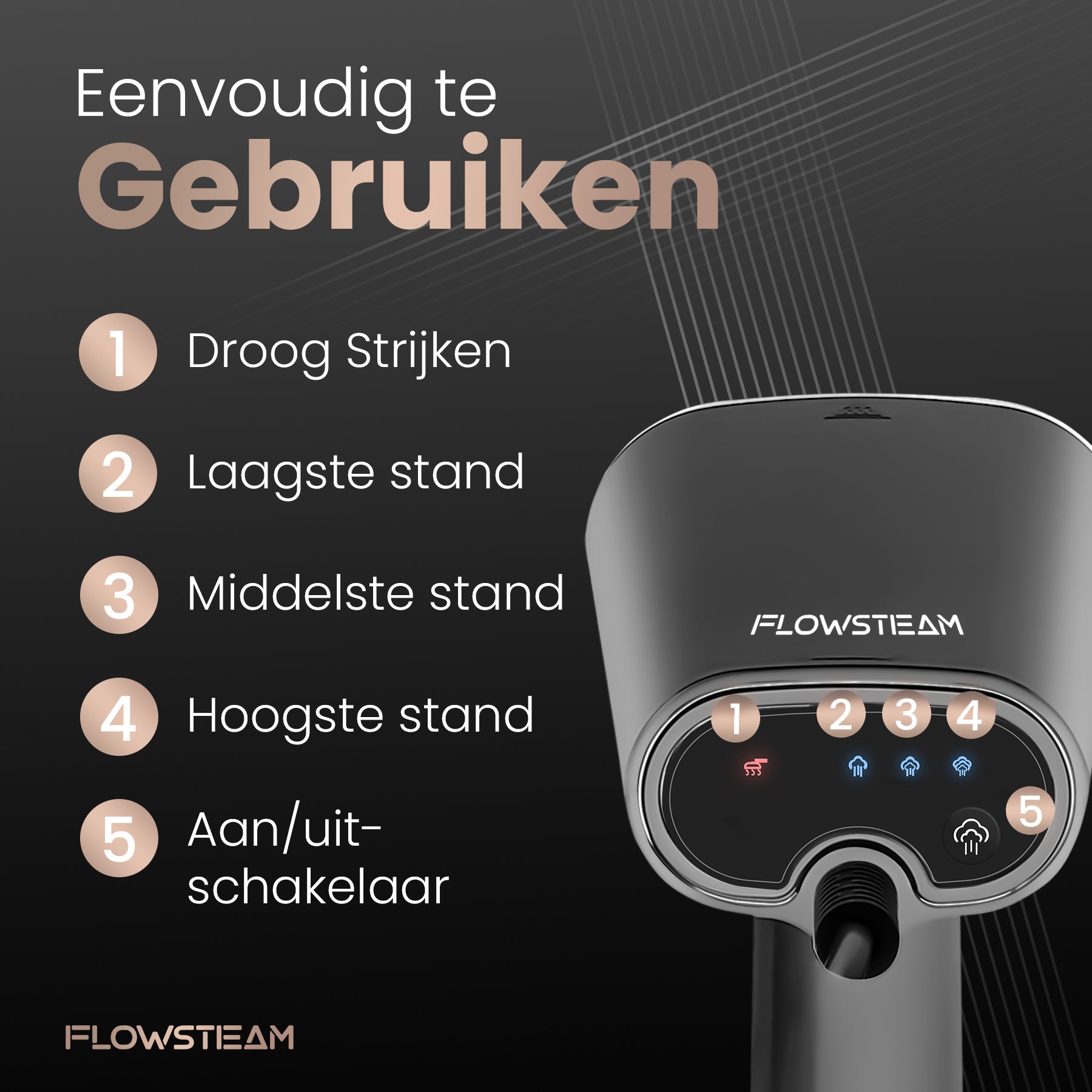 Discover the FLOWSTEAM garment steamer: the ideal solution for effortless and sustainable clothing care. With our advanced steam technology, clothes are quickly wrinkle-free and fibers remain intact for longer. The compact and lightweight design makes it ideal for home and travel, without the need for an ironing board. Less washing, less wear and tear, and a longer life for your wardrobe.