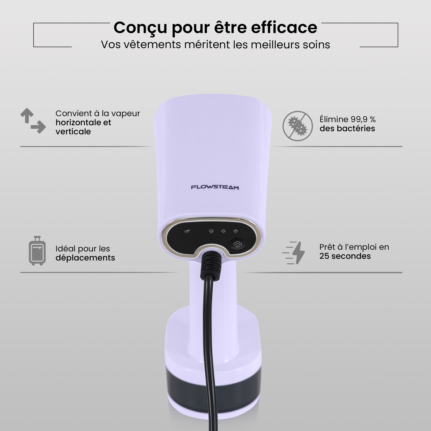 Découvrez le défroisseur FLOWSTEAM : la solution idéale pour un entretien des vêtements sans effort et durable. Grâce à notre technologie vapeur avancée, les vêtements deviennent rapidement infroissables et les fibres restent intactes plus longtemps. Son design compact et léger le rend idéal pour la maison et les voyages, sans avoir besoin d'une planche à repasser. Moins de lavage, moins d'usure et une durée de vie plus longue pour votre garde-robe.